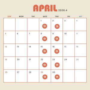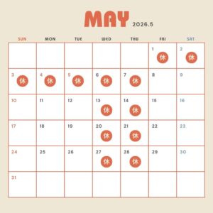 ※お休みの日程につきましては、場合により急遽変更されることがございます。