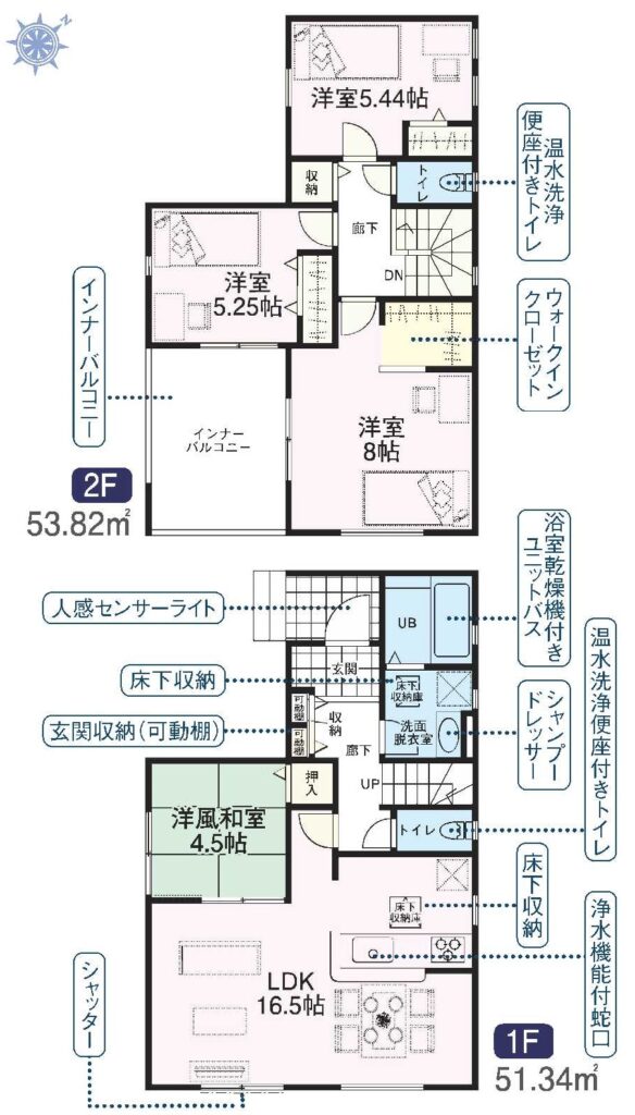 | 設備・条件 | システムキッチン カウンターキッチン 洗髪洗面化粧台 浴室乾燥機 温水洗浄便座 床下収納 W.INクローゼット 都市ガス 公営水道 バルコニー バリアフリー 住宅性能評価書 | ||
